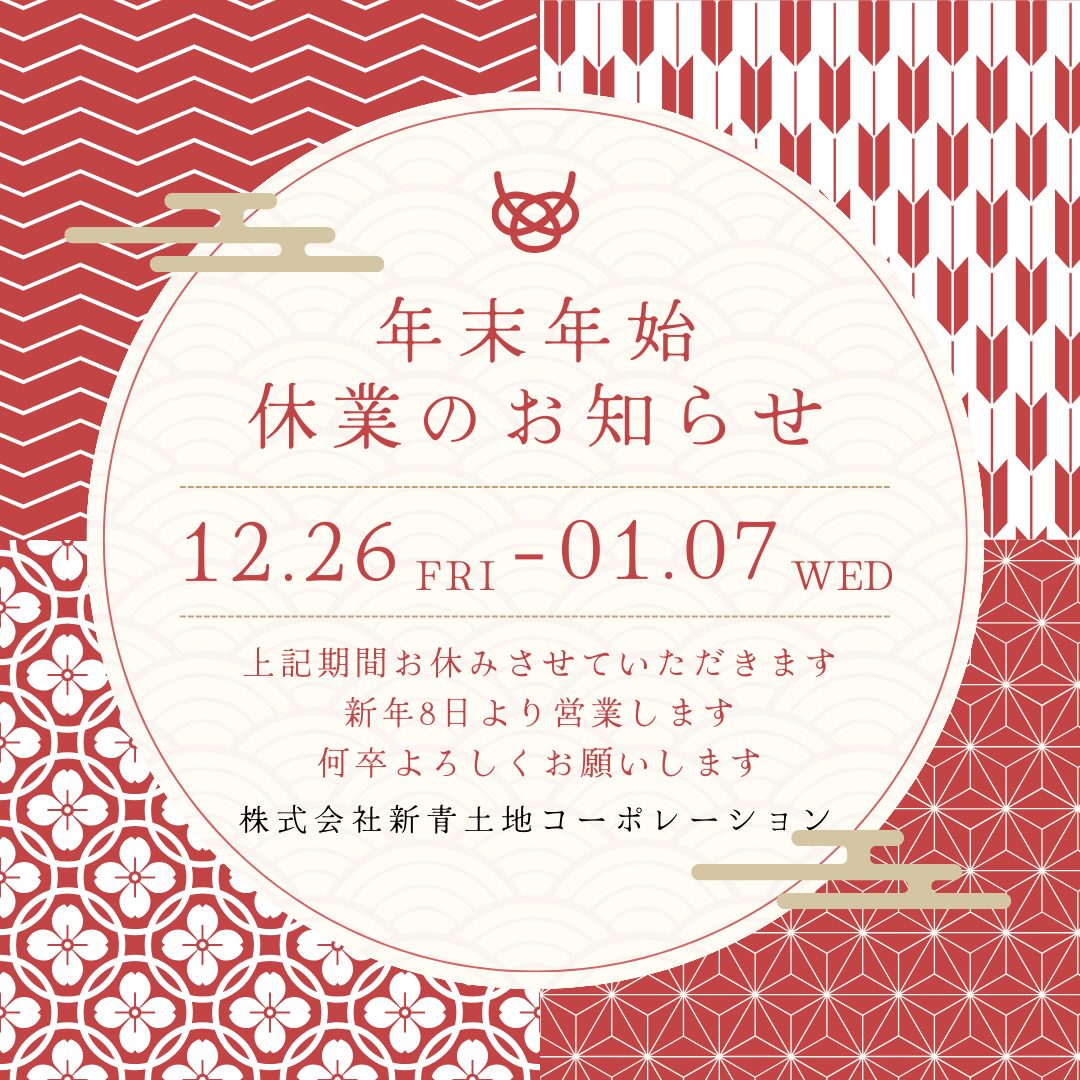 誠に勝手ながら、下記の期間を年末年始休業期間とさせていただきます。